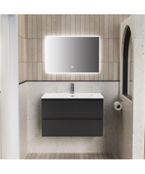 Badkamermeubelset BWS Liva Onderkast Wastafel en LED Spiegel 80 cm Mat Zwart