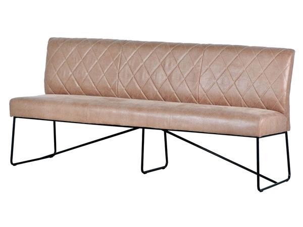 Het onderstel van deze eetkamerbank is uitgevoerd in zwart metaal.