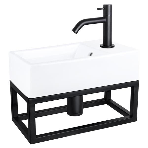 Fonteinset Differnz Force Keramiek en Handoekrek 40x22x11.5 cm Wit Met Gebogen Kraan Mat Zwart
