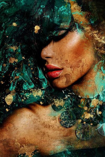 Glasschilderij vrouw met blauw 825 van Ter Halle