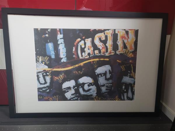Herman Brood casino (print) in nieuwe lijst kleur zwart (lijst op foto is voorbeeld) afmeting met lijst is 60x90 de print zit in passe partout kan niet uit de passe partout