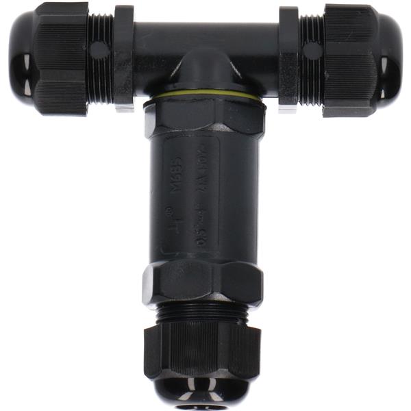 Dankzij de IP68-classificatie is deze kabelverbinder uitstekend beschermd tegen water en stof. Niet alleen regenwater, maar zelfs langdurige onderdompeling doet de T-connector niets.
