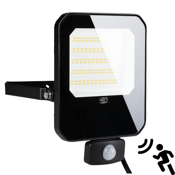 LED Schijnwerper 50W met Sensor - 6000 lumen - Koelwit 4000K - PIR Bewegingssensor - IP65 - Zwart