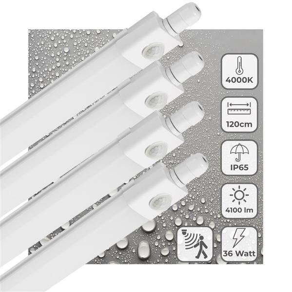 Met 4100 lumen vervangt deze LED armatuur traditionele verlichting van 340-410W. Dankzij de geïntegreerde PIR bewegingssensor schakelt de verlichting automatisch in wanneer je de ruimte binnenkomt en blijft 5 minuten branden na de laatste beweging. Perfect voor garages, werkplaatsen, schuren en andere ruimtes waar je handsfree verlichting wilt.