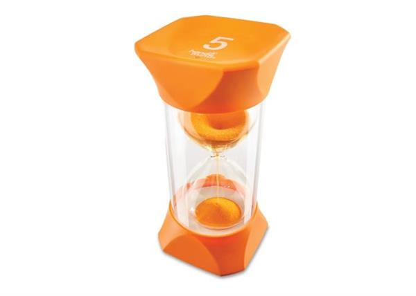 Gebruik deze kleurrijke Mega-zandloper als visuele weergave van 5 minuten.