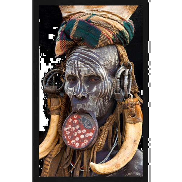 Prachtig schilderij Mursi Woman met zwarte achtergrond.