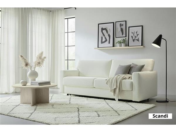 Deze mooie en zeer goed zittende Scandi slaapbank past door zijn uitstraling in vrijwel elke woonkamer. De rugleuning loopt aan de zijkanten over de arm leuning heen dit geeft een 'rijke' uitstraling. Het model Scandi slaapbank is erg gemakkelijk van bank te veranderen in een slaapbank.