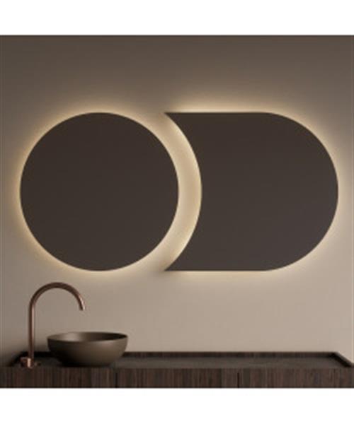 Deze exclusieve spiegelset combineert een ronde spiegel van 70cm diameter met een organisch gevormde spiegel van 100 x70cm. De verstelbare LED-verlichting past zich aan uw behoeften aan, terwijl de geïntegreerde verwarming zorgt voor een helder zicht. De bewegingssensor maakt bediening extra gemakkelijk en hygiënisch.