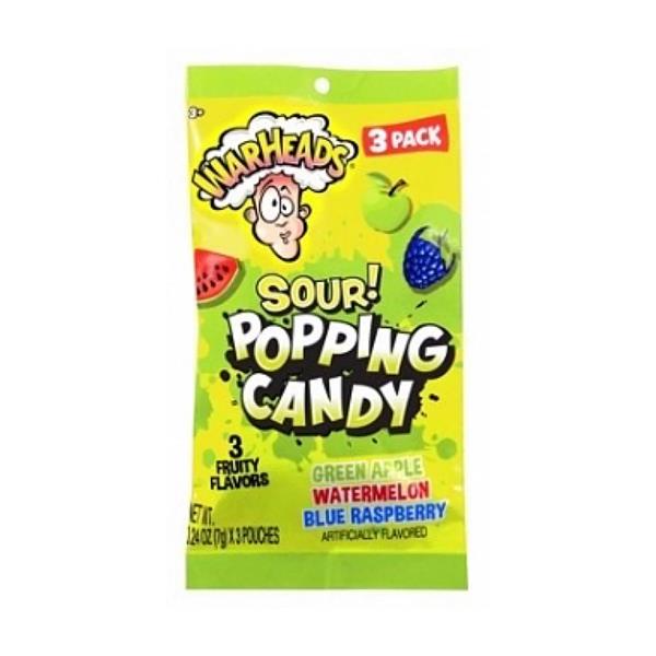 Warheads Sour Popping Candy zijn kleine snoepjes met een intense, zure smaak die in je mond "ploffen" en een tintelend gevoel achterlaten.