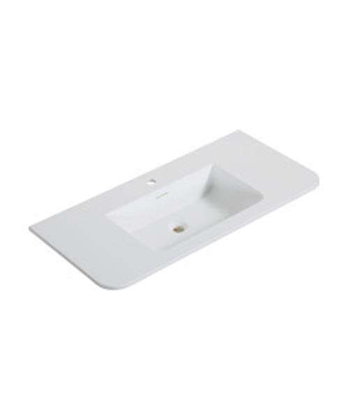 Wastafel Wiesbaden Laro 100x48x1,5 cm Met 1 Kraangat Ronde Hoeken Solid Surface Mat Wit