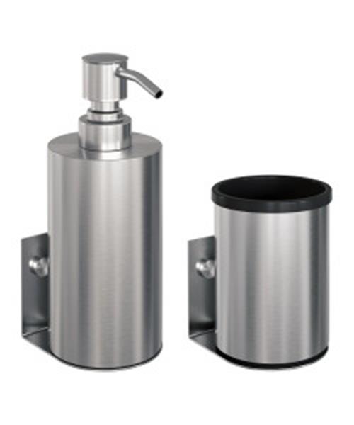 Zeepdispenser en Beker BRAUER Model A Incl. Wand Ophanging en Magnetisch opzetvlak Geborsteld RVS